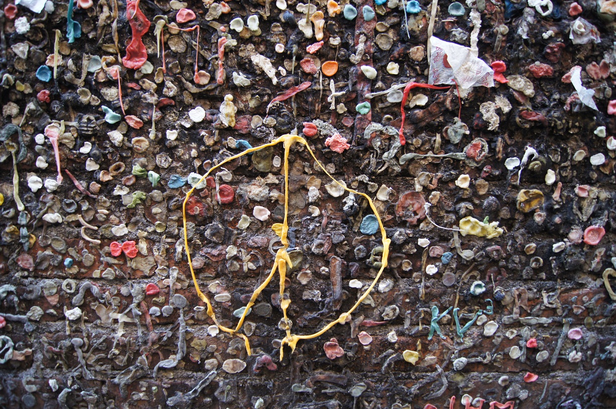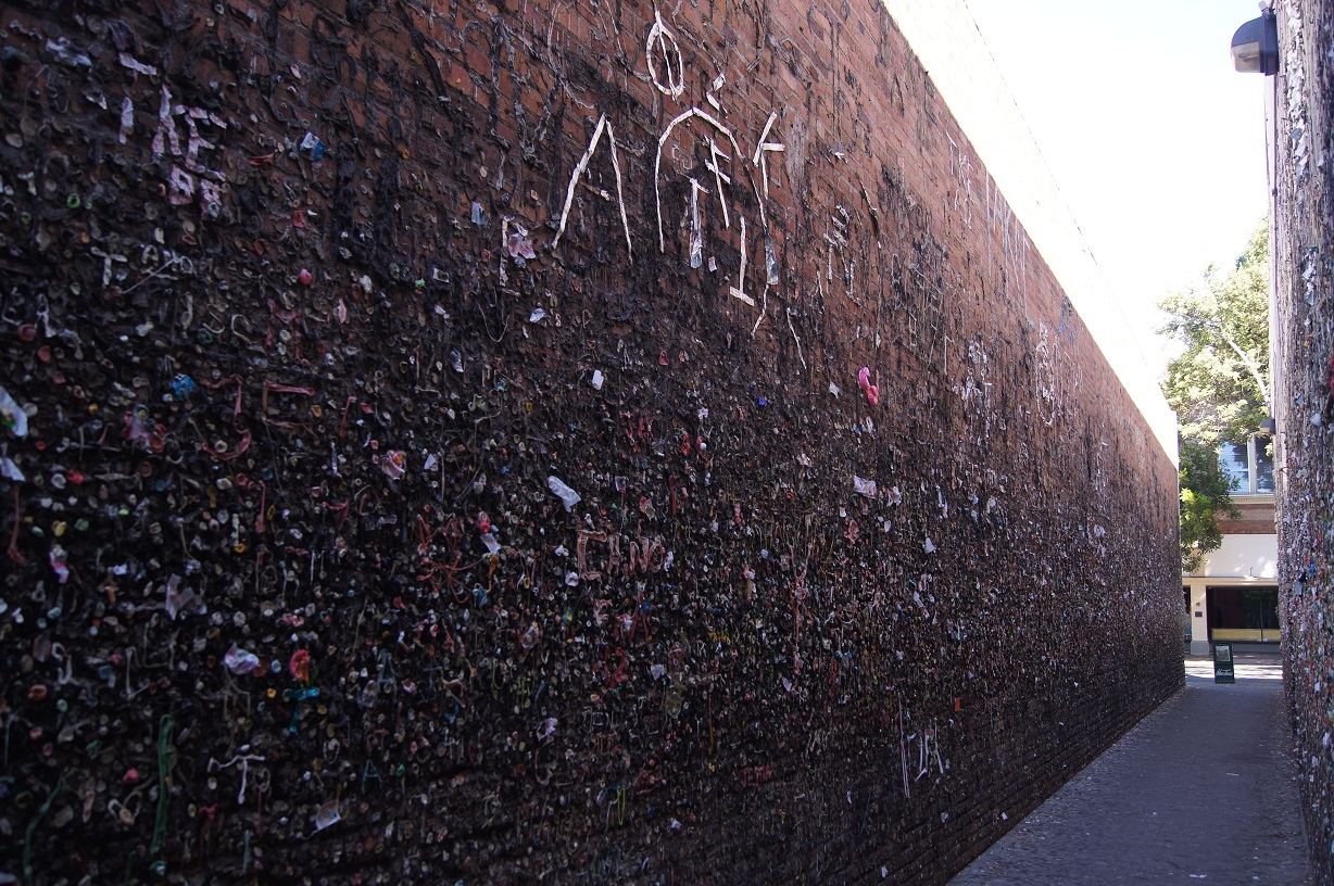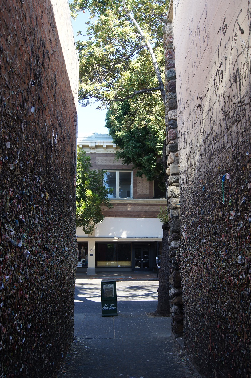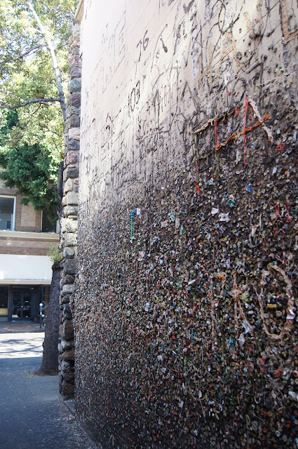The local population has mixed opinions about this place. After all, it's right smack dab in the middle of charming Higuera Street. (The 700 block) The walls have been cleaned a few times, but within a month, the wads of gum are back. The town has finally given up. Crazy tourists like me show up and then go have a cup of coffee and a bite to eat. It's not bad for business.