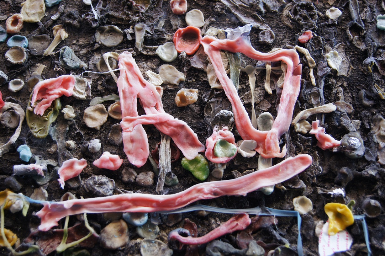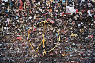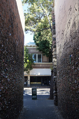 My travel buddy refused to go with me. "That's beyond gross," he said. "You're on your own." So off I went to San Luis Obispo to see this gorgeous, gooey, smelly, disgusting, fascinating concoction of gum graffiti. I was blown away! Two walls of a narrow alley in downtown SLO are covered in wads of bubblegum--the more colorful and the more fruity the better. I got a strong whiff of apple and watermelon as I walked through this artistic installation.